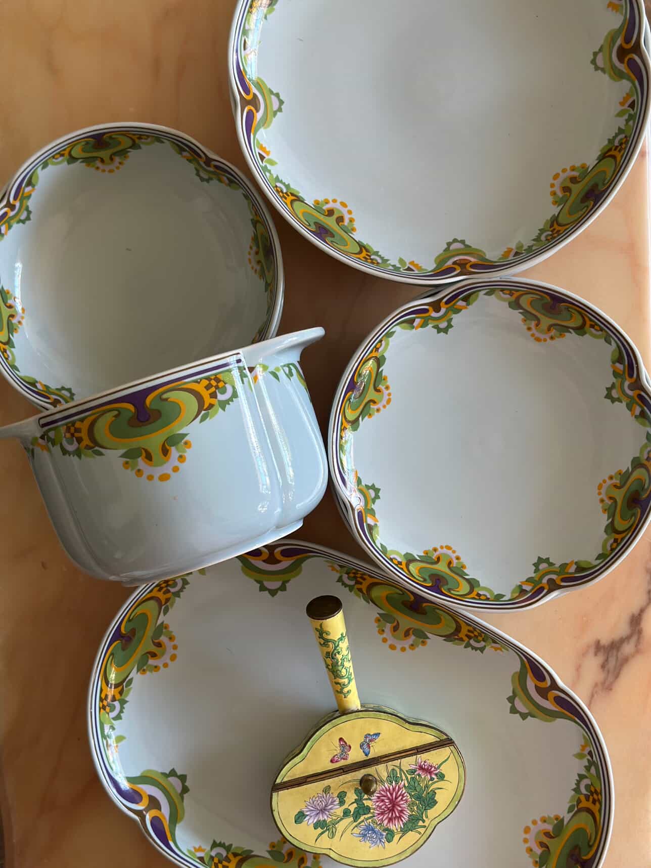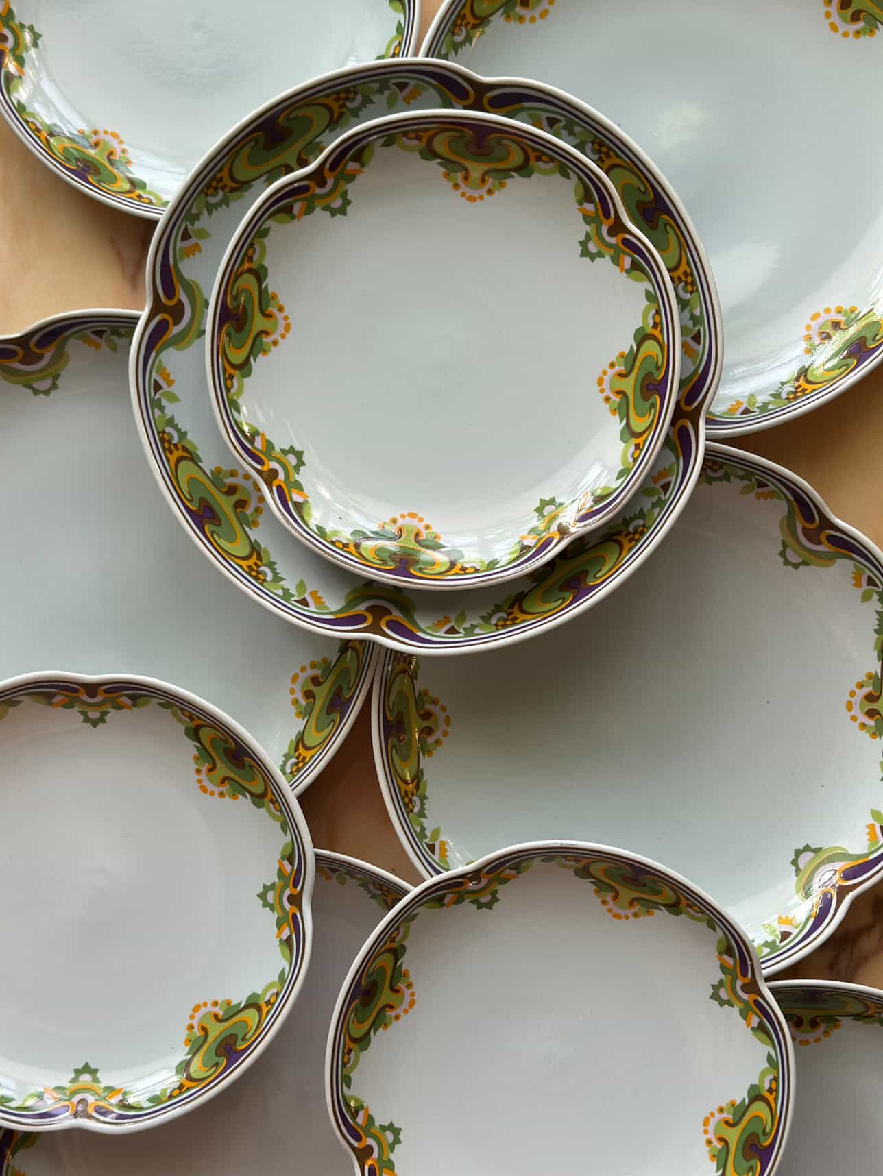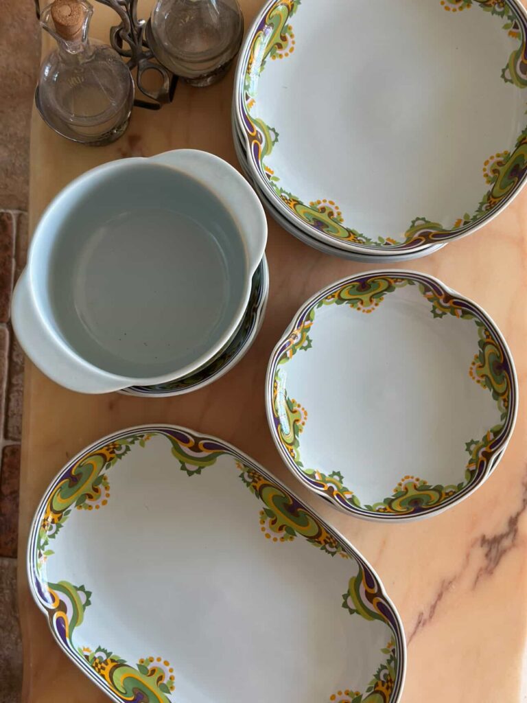 Особенности: • Уникальная форма: Края тарелок имеют мягкий волнообразный изгиб, характерный для природно-органических форм Модерна. • Эстетика: Геометрический орнамент напоминает витражи и ювелирные украшения начала прошлого века. • Клеймо: На каждом предмете стоит фирменное подглазурное клеймо Rosenthal Studio-Linie Germany. Состояние: Сервиз находится в превосходном состоянии. Цвета декора сочные, глазурь без повреждений. Фарфор Rosenthal славится своей долговечностью и устойчивостью к износу. Этот сервиз станет центральным элементом вашей коллекции или статусным подарком, который подчеркнет безупречный вкус владельца.